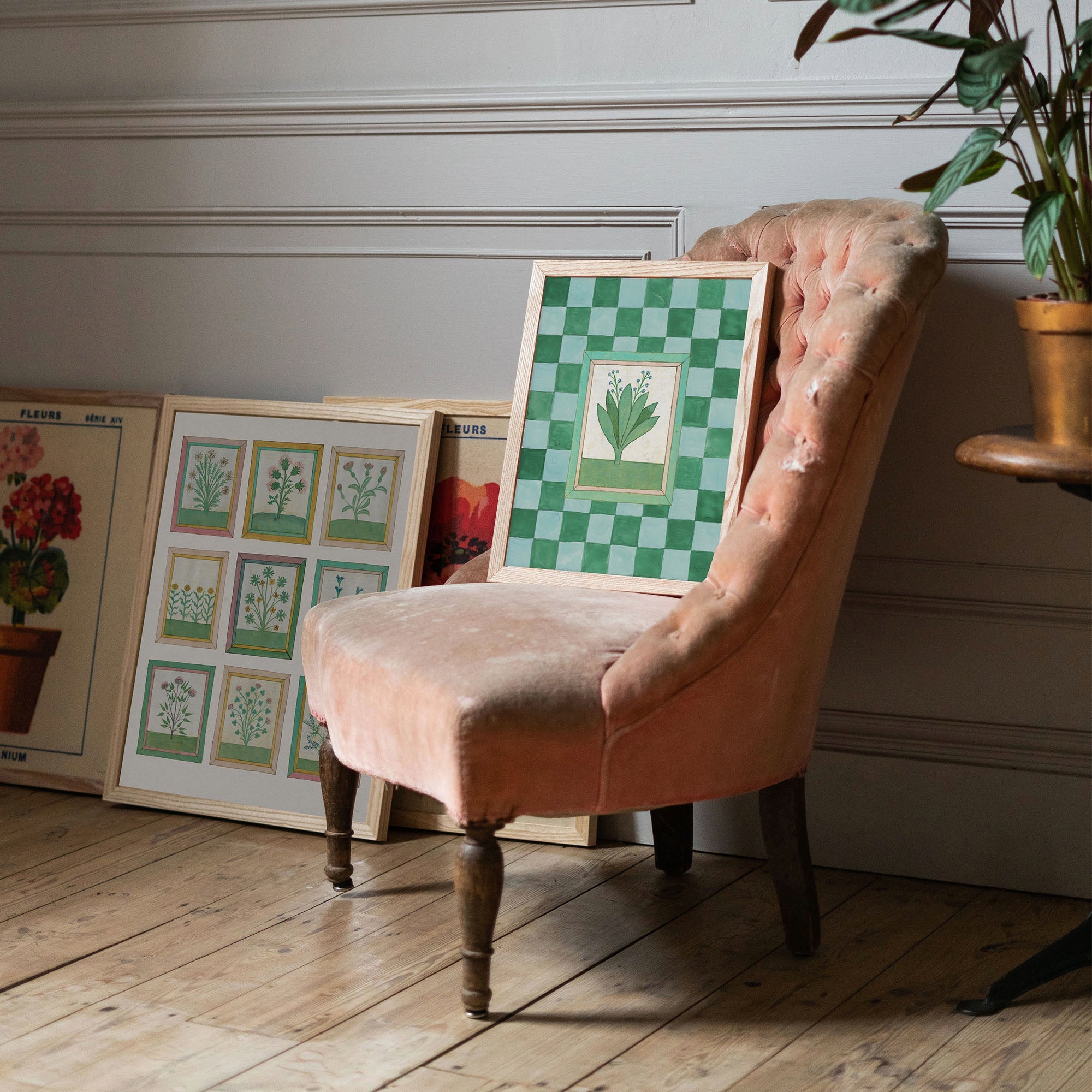 Book of Herbs Pink Check Fine Art Print