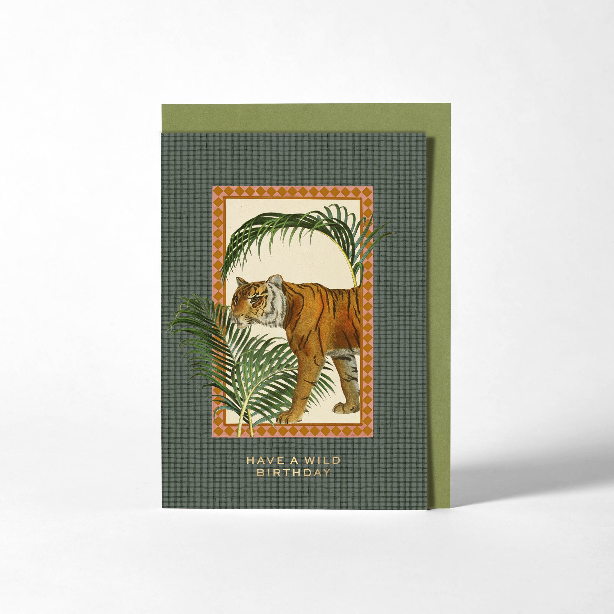 This A6 greetings card features a striking 19th-century tiger illustration sourced from a French natural history encyclopedia.